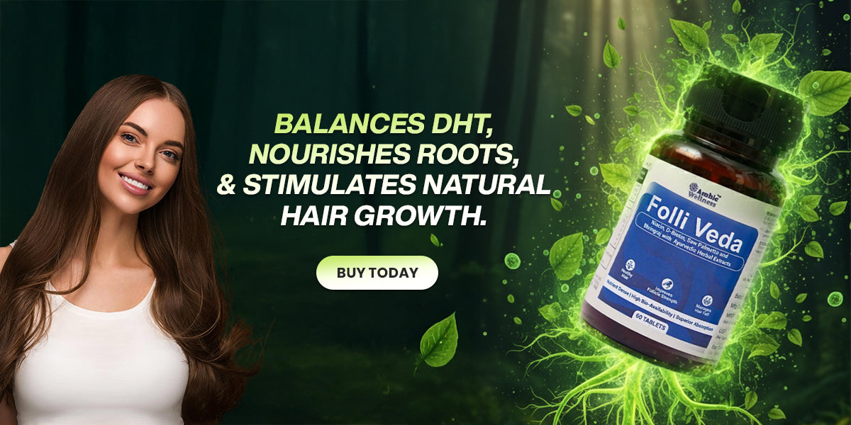 Ambic Wellness Folli Veda Hair Supplement for Men & Women I India's 1st DHT Balancer Biotin Tablet for Hair Growth with Saw Palmetto, Folic Acid