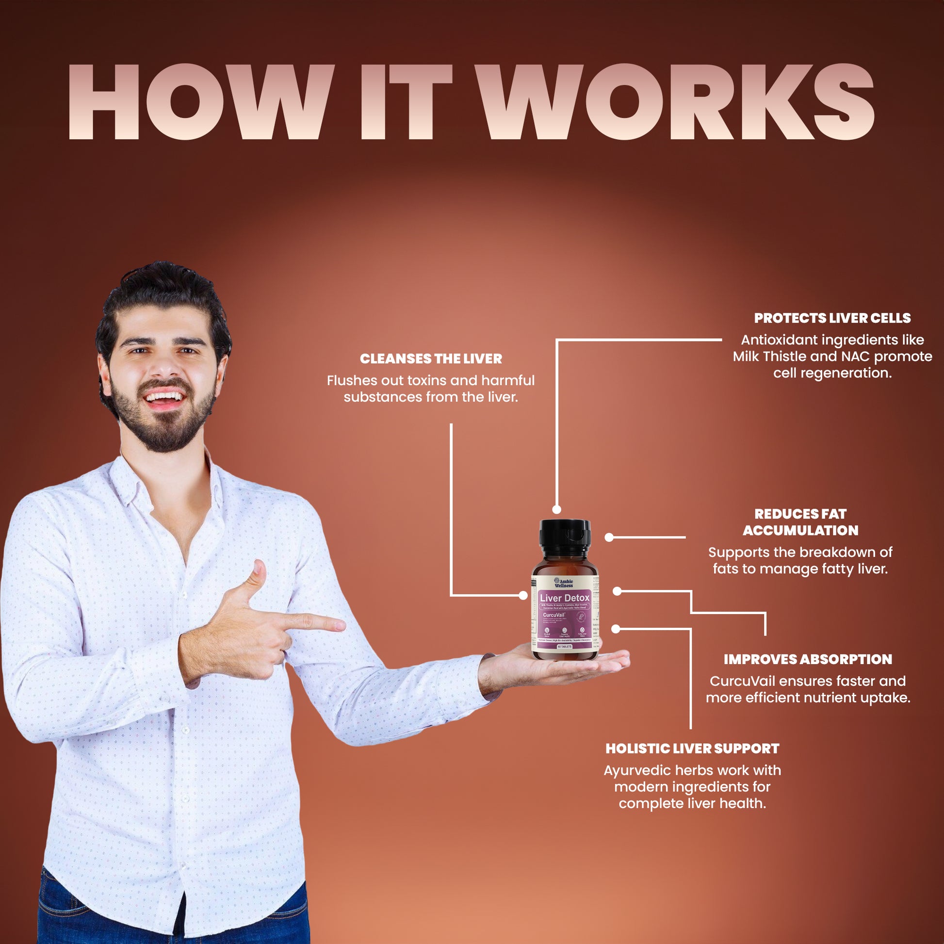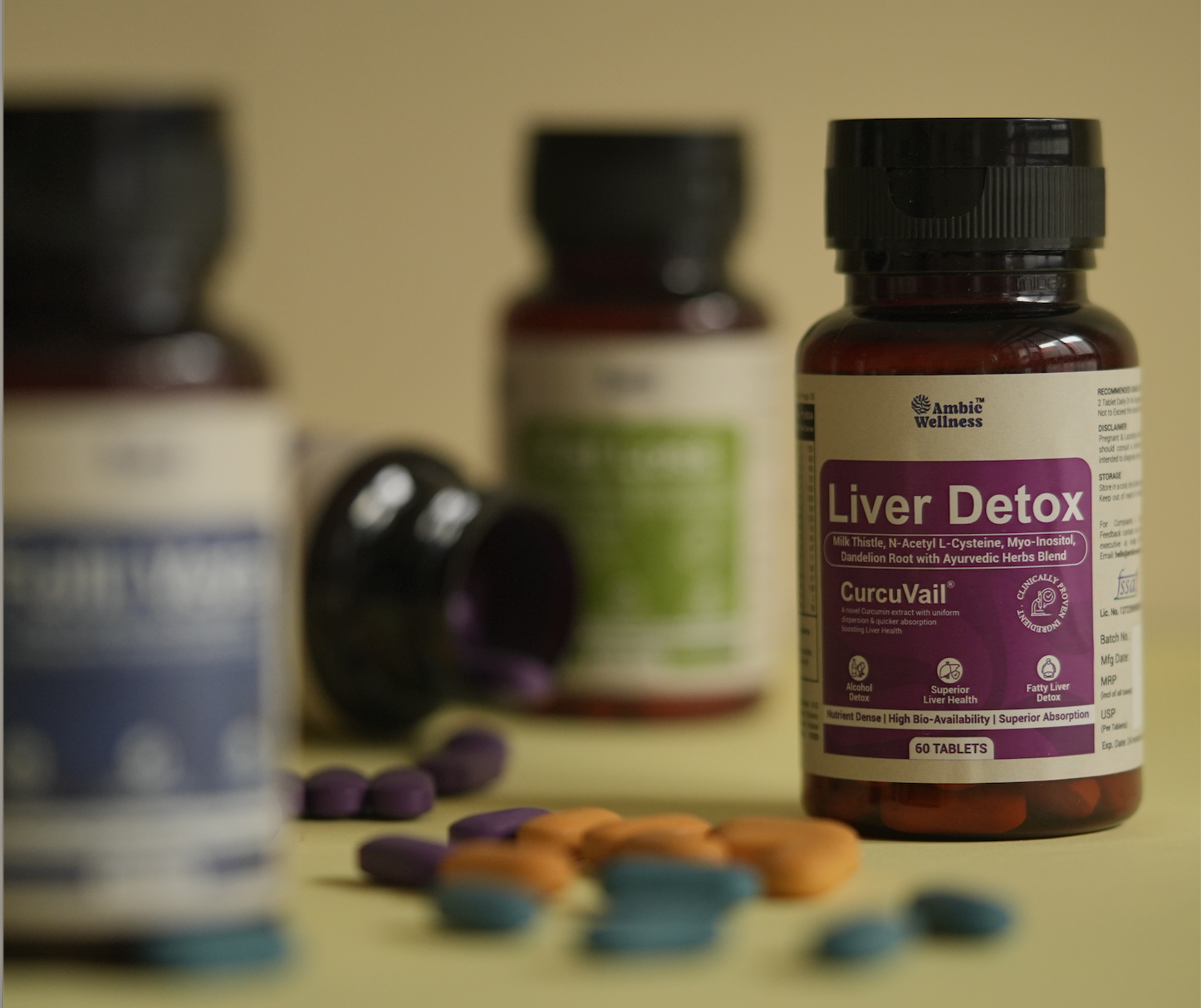 Ambic Wellness Liver Detox is an Ayurvedic supplement formulated to support healthy liver function, help eliminate toxins, and promote overall digestive wellness.